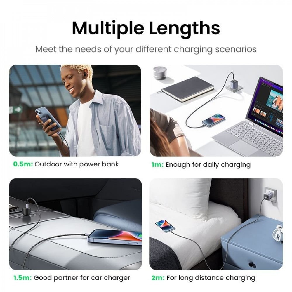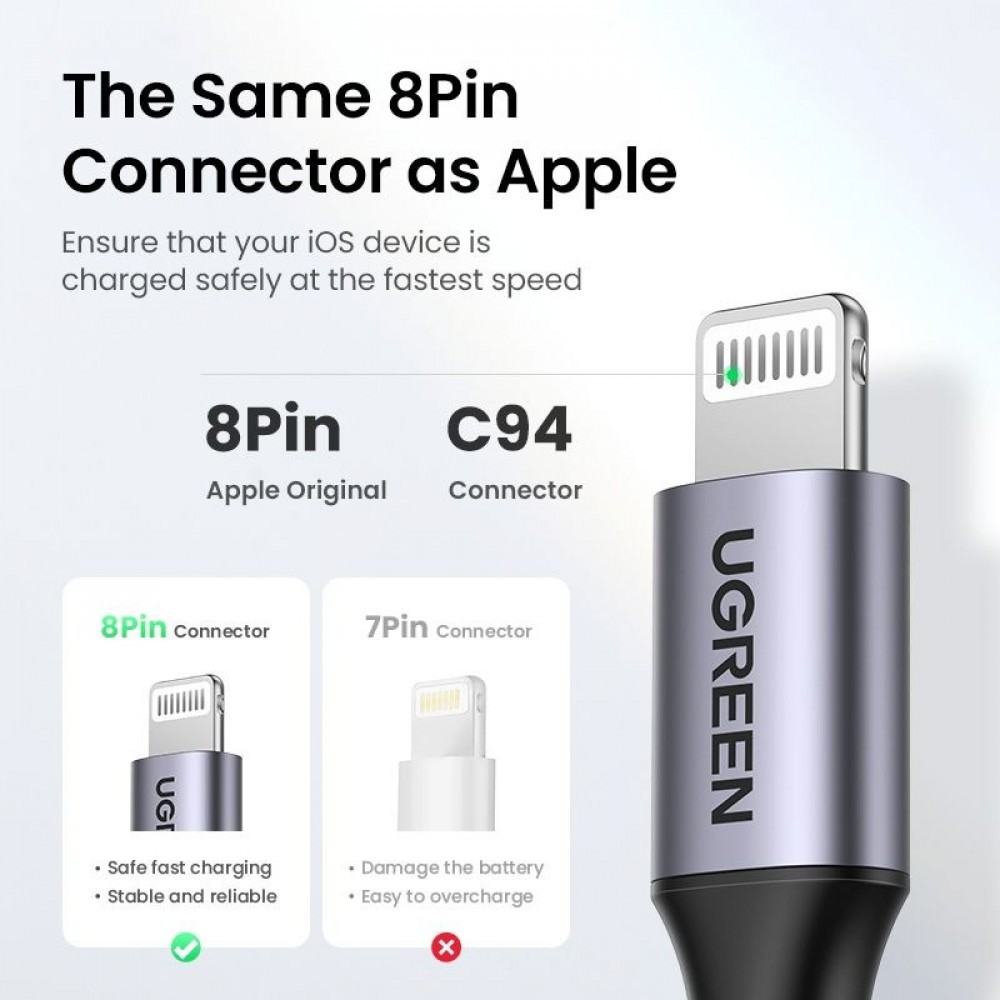التوافق الكامل: كابل Lightning USB من النوع C من UGREEN متوافق مع iPhone SE 2020 و iPhone 11 Pro max و 11 Pro و 11 و iPhone X و iPhone XS و iPhone XS Max و iPhone XR و iPhone8 و iPhone8 Plus و Airpods Pro و iPad Air 3 ، iPad mini5 ، iPad 2019 ، iPad Pro 2017/2015.