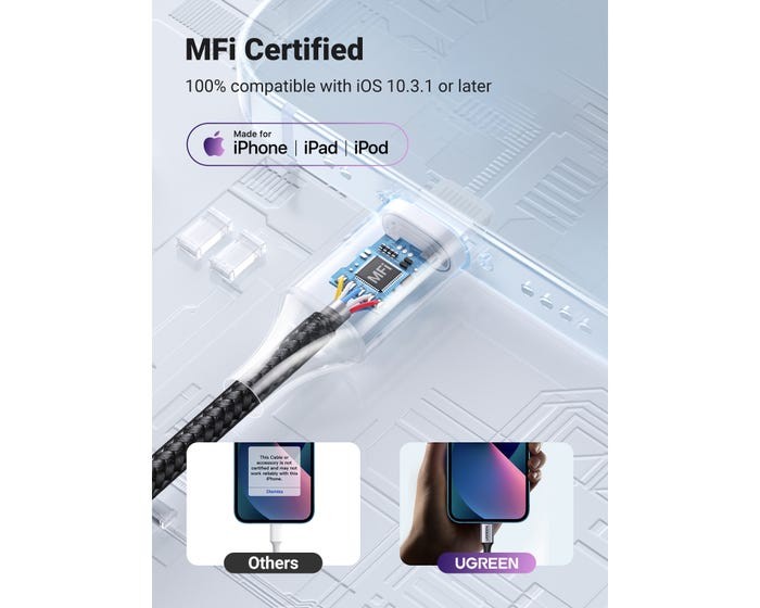 يضمن الاتصال الكامل والآمن بأجهزة Apple الخاصة بك ، والتوافق بنسبة 100٪ مع نظام iOS بدون رسالة خطأ.