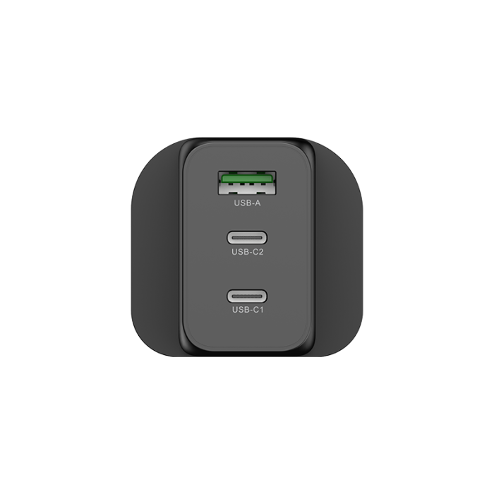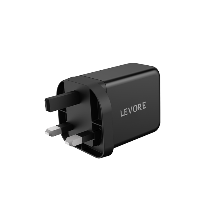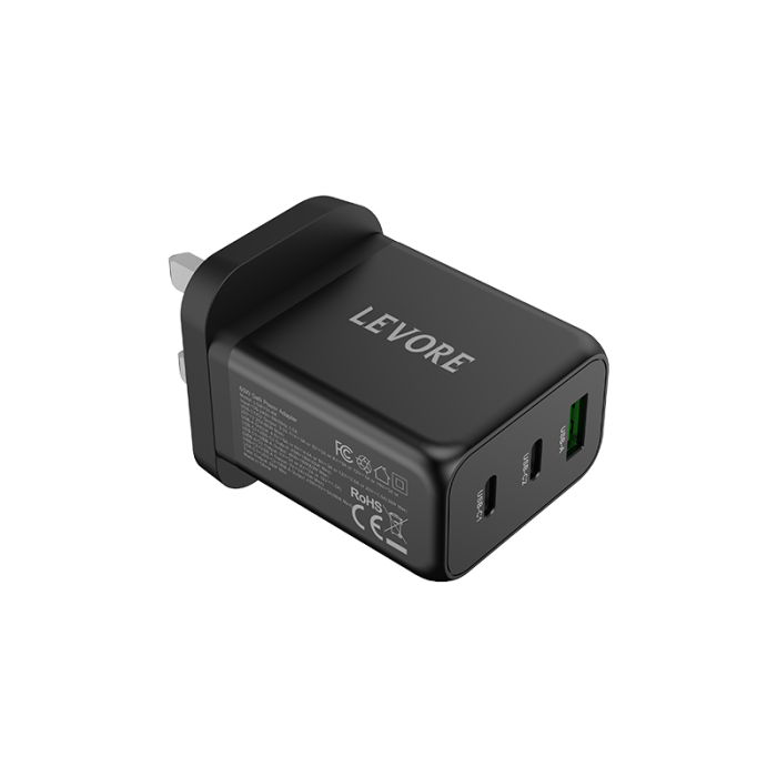 ليفوري - شاحن جداري 65 واط منفذين USB-C ومنفذ USB-A - أسود