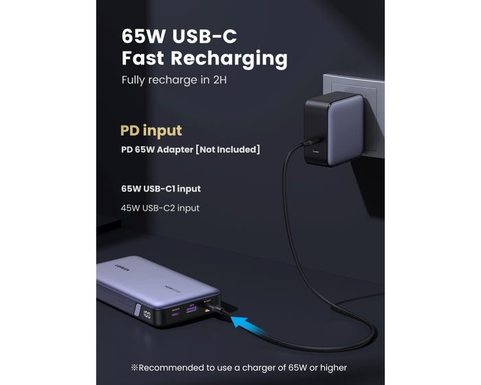 الشحن السريع في اتجاهين: يمكنك إعادة شحن بنك الطاقة 25000 مللي أمبير في الساعة بسهولة في غضون ساعتين باستخدام شاحن 65 وات PD (غير مدرج). بفضل تقنيتنا ثنائية الاتجاه ، يمكنك شحن الأجهزة بسرعة أثناء إعادة الشحن السريع لهذا الشاحن المحمول.