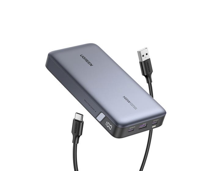 سعة هائلة تبلغ 25000 مللي أمبير في الساعة: يأتي بنك الطاقة المحمول للشحن من Ugreen مزودًا ببطارية ضخمة تبلغ 25000 مللي أمبير في الساعة ويبلغ إجمالي خرج الطاقة 145 وات! أعد شحن أجهزة الكمبيوتر المحمولة بالكامل حتى 1.3 مرة وشحن الأجهزة المحمولة حتى 5.6 مرة.