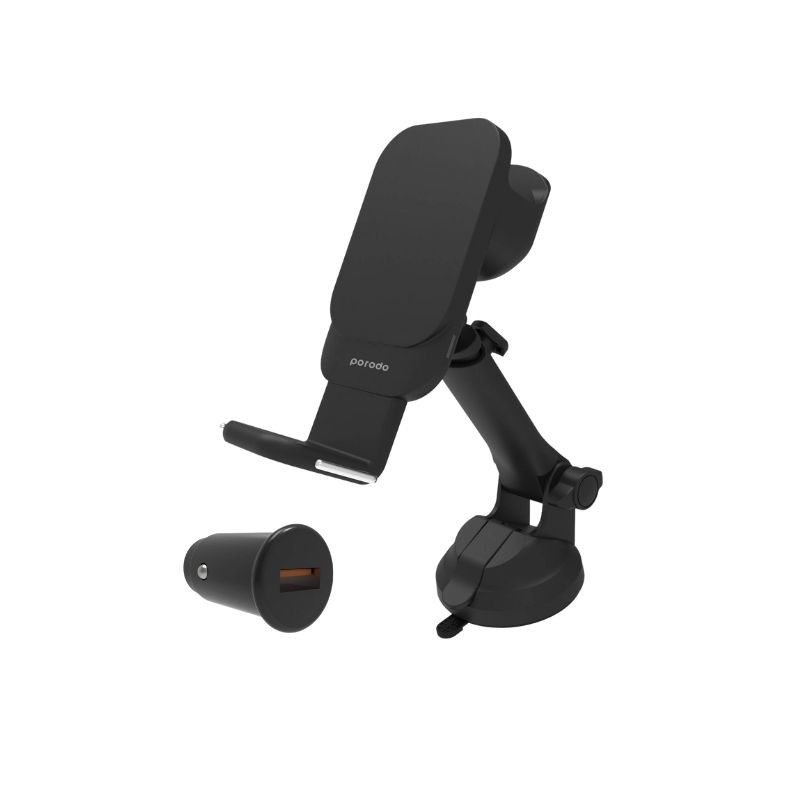حامل جوال للسيارة شحن لاسلكي 3 في 1 مع شاحن شيارة Porodo MagSafe Car Mount and Watch & Earbuds Charging with Car Charger ، يتميز بالتصميم الأنيق والجودة العالية، يمكنك من تثبيت هاتفك المحمول وشحنه في السيارة بسهولة ، بالاضافة الى امكانية شحن سماعة اذن ايربودز والساعات الذكية لاسلكيا.