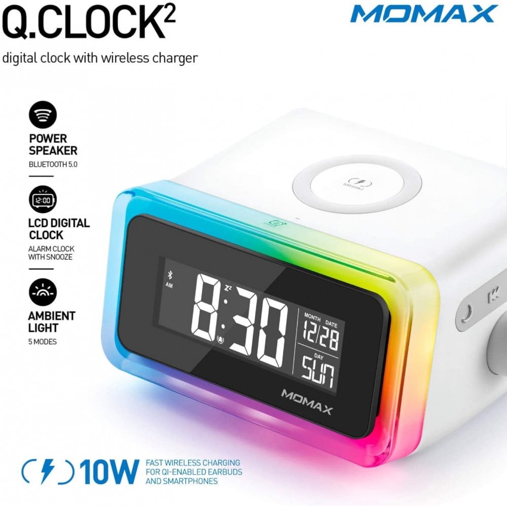 - ساعة رقمية بتقنية الشحن اللاسلكي.