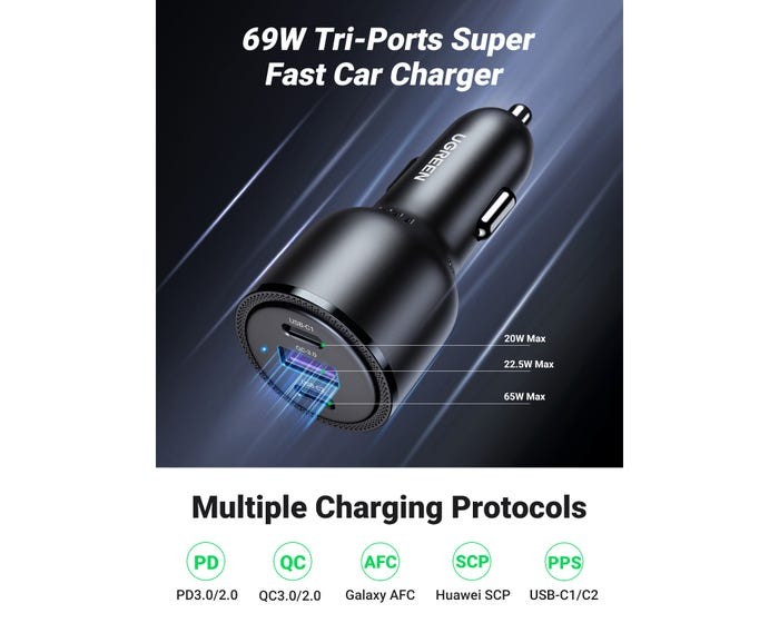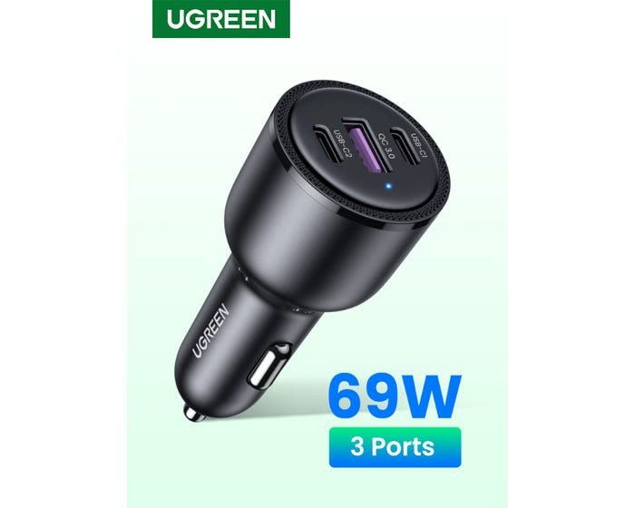 شاحن سيارة Ugreen 2x USB Type C / 1x USB 69W 5A Power Delivery Quick Charge Black (20467)