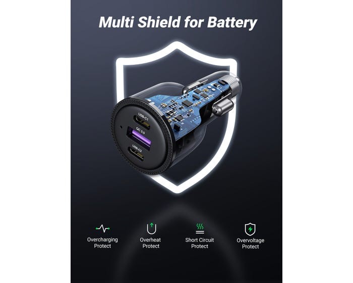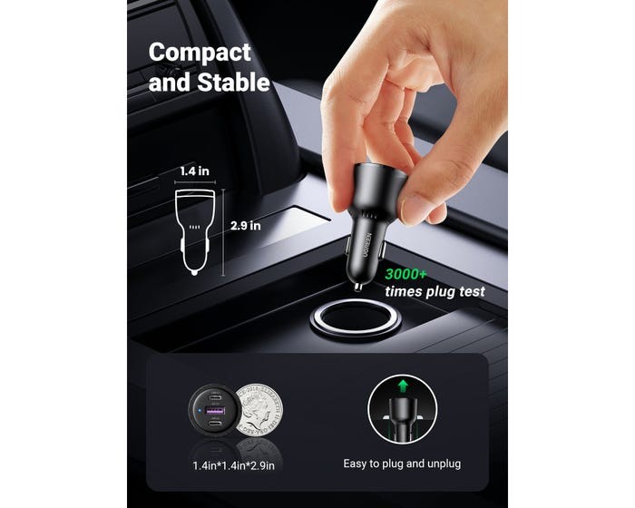 شاحن سيارة يوجرين حديث وعالمي بتصميم يسهل إزالته من مقبس ولاعة السجائر. مصنوعة من مواد عالية الجودة ومجهزة بـ 3 منافذ USB ونظام إدارة ذكي لا يضبط التيار على الجهاز المشحون فحسب ، بل يحميه أيضًا من الجهد الزائد أو الشحن الزائد أو السخونة الزائدة.