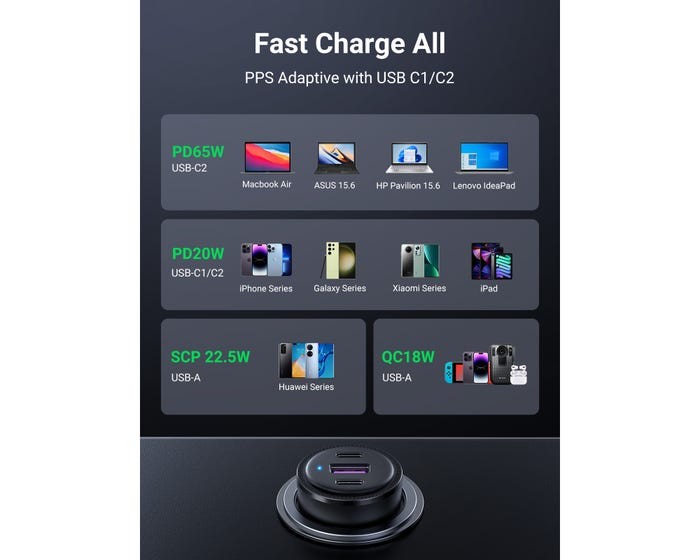 ملخص الشحن السريع - يدعم الملحق تقنيات الشحن السريع - الشحن السريع 3.0 و 2.0 (QC 3.0 / QC 2.0) وإيصال الطاقة
