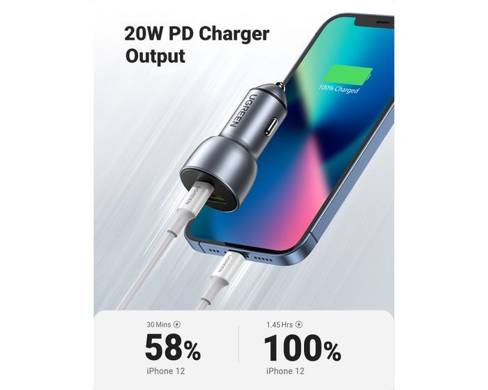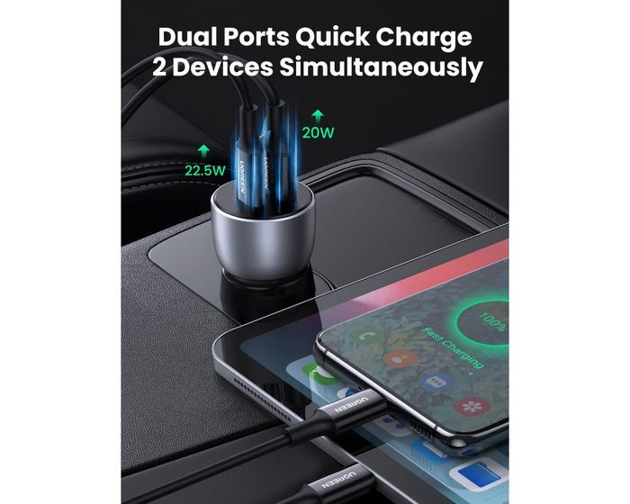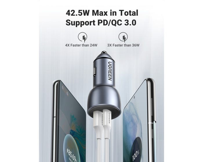 يوجرين المنيوم لشاحن السيارة 52.5 وات من يوجرين (رمادي فلكي) مخرجين