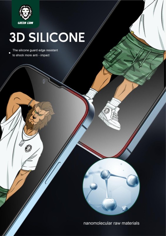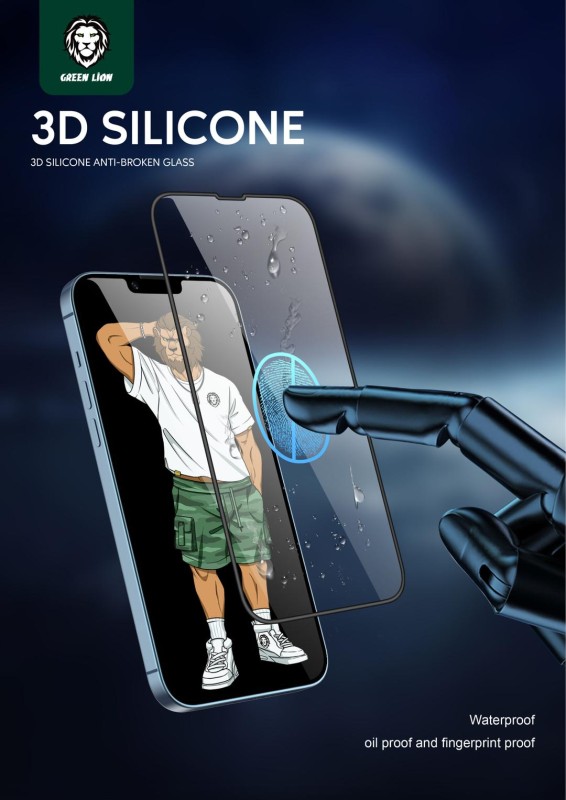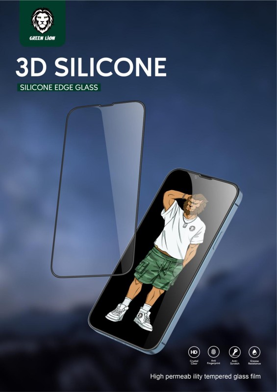 قرين ليون - استكر حمايه الشاشه زجاج شفاف أطراف سيلكون - ايفون 13 برو ماكس