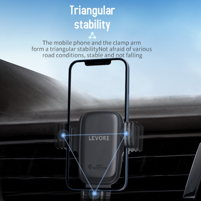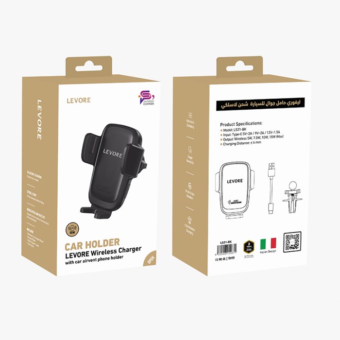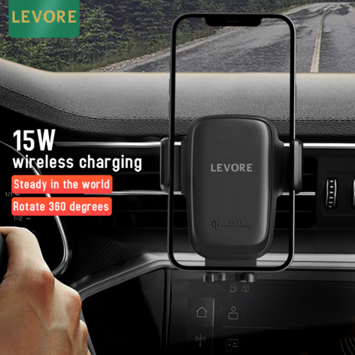 ليفوري - ليفوري حامل جوال يدعم الشحن اللاسلكي بقوة 15 واط بتقنية الأقفال علي الجوال - أسود
