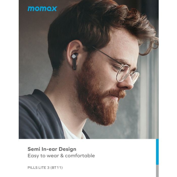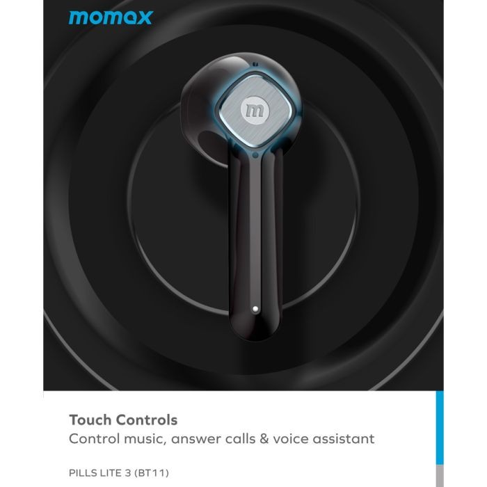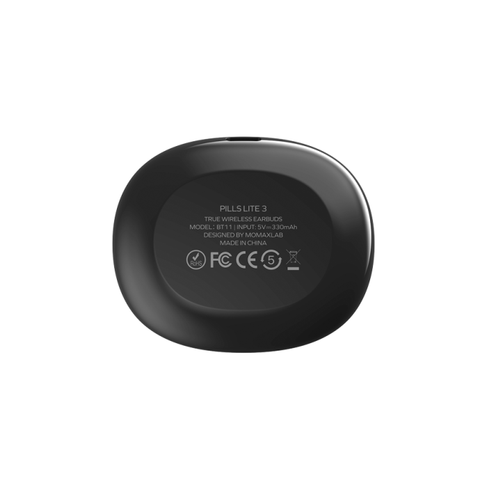 موماكس - سماعة أذن بلوتوث لاسلكي بيلس لايت 3 ترو مع غطاء شاحن - أسود