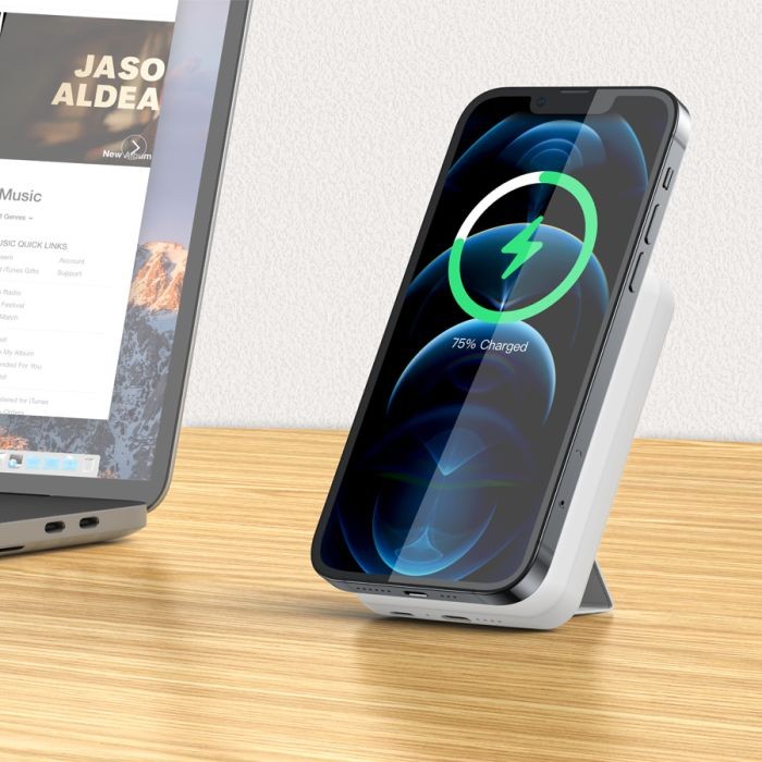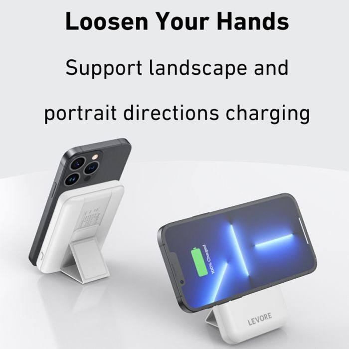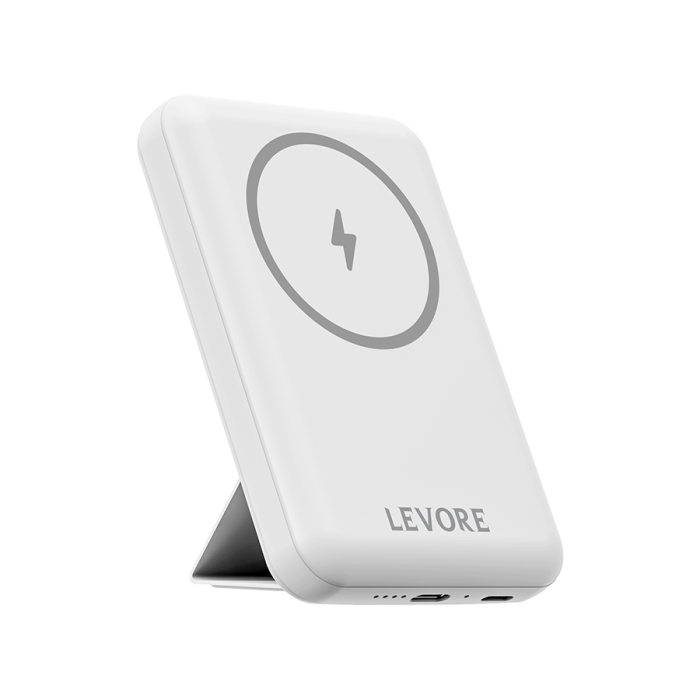 ليفوري - شاحن متنقل مغناطيسي ماج سيف بسعة 5000 ملي امبير للآيفون وبمنفذ بي دي 20 واط - أبيض