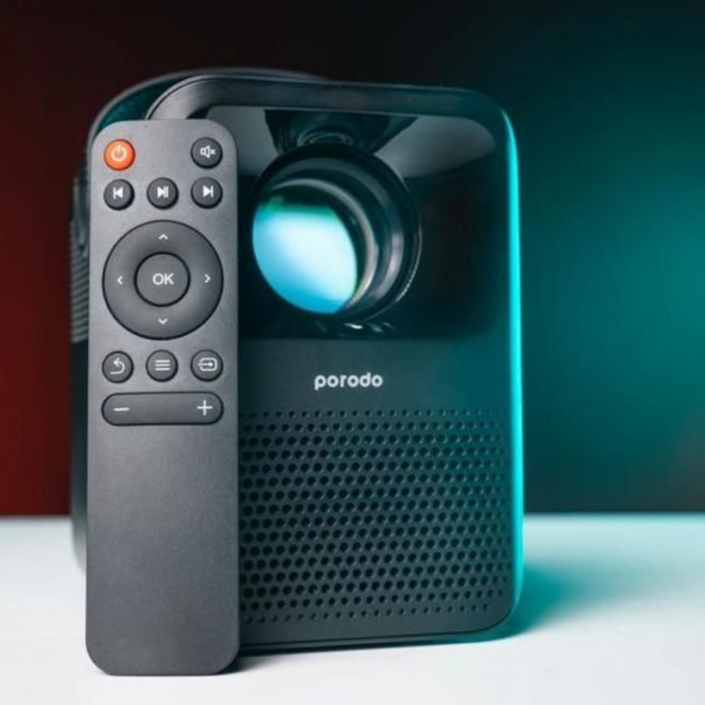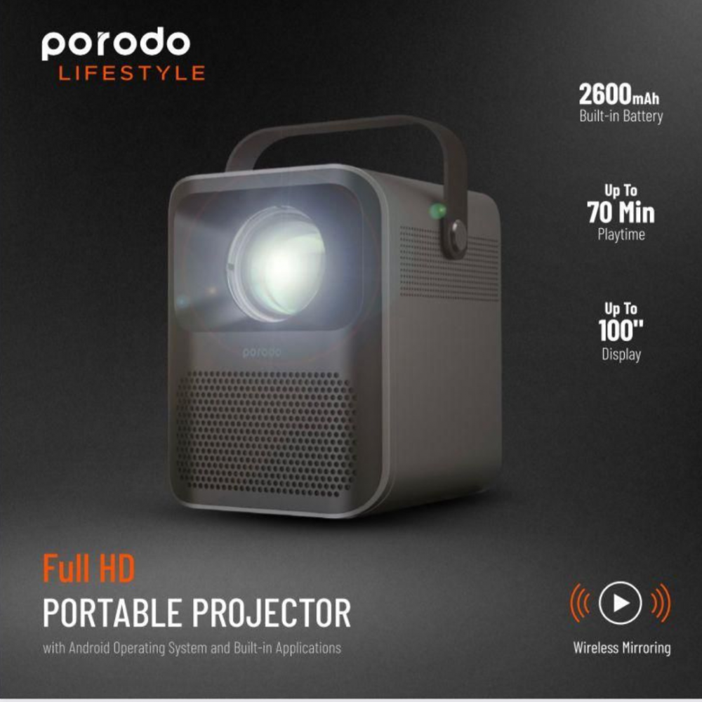 بروجكتر محمول بالبطارية من بورودو Porodo، يتميز بالجودة العالية وخفة الوزن وسهولة الحمل، ويمنحك عرض ورؤية واضحة بدقة صورة تصل إلى 1080 بكسل HD،, بتصميمه الأنيق و الحديث سيعطيك تجربة سينمائية رائعة في المنزل وليمكنك من مشاهدة الأفلام والاستمتاع بالحفلات