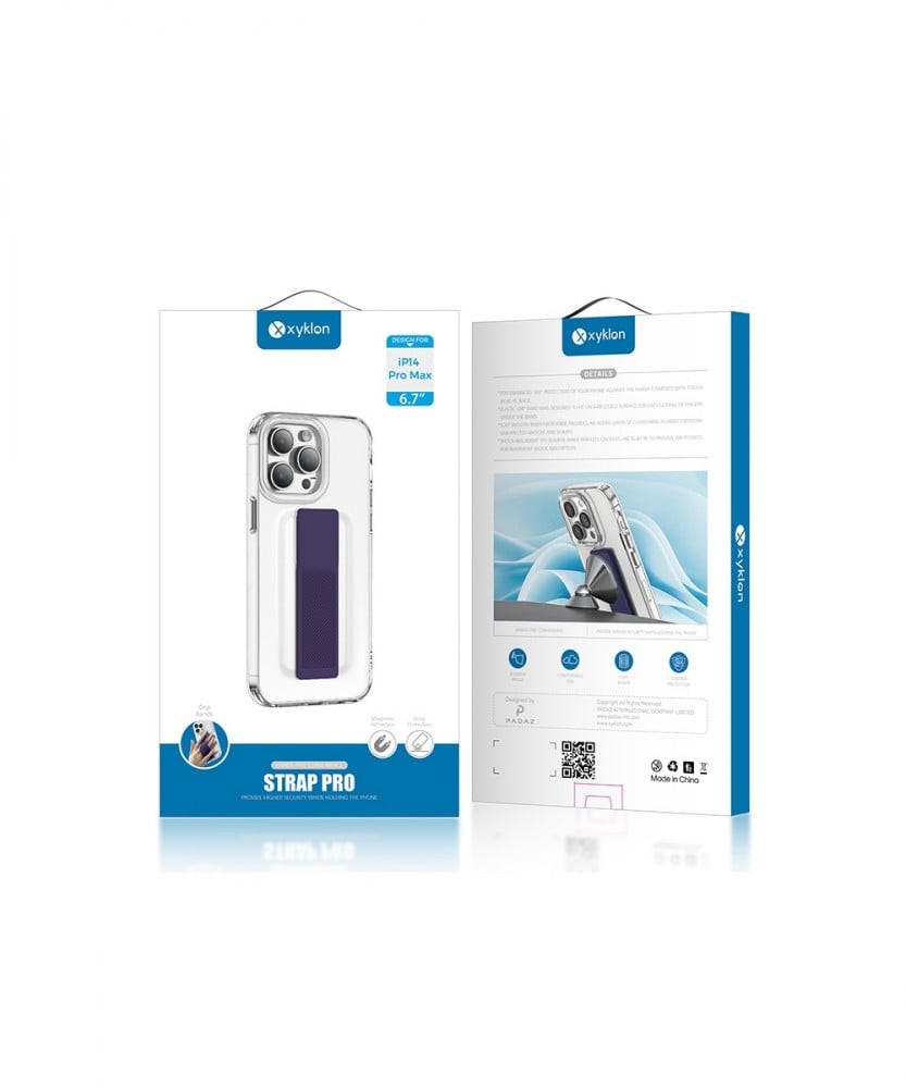 XYKLON - كفر شفاف مع مسكة 14 برو - مسكة بنفسجي